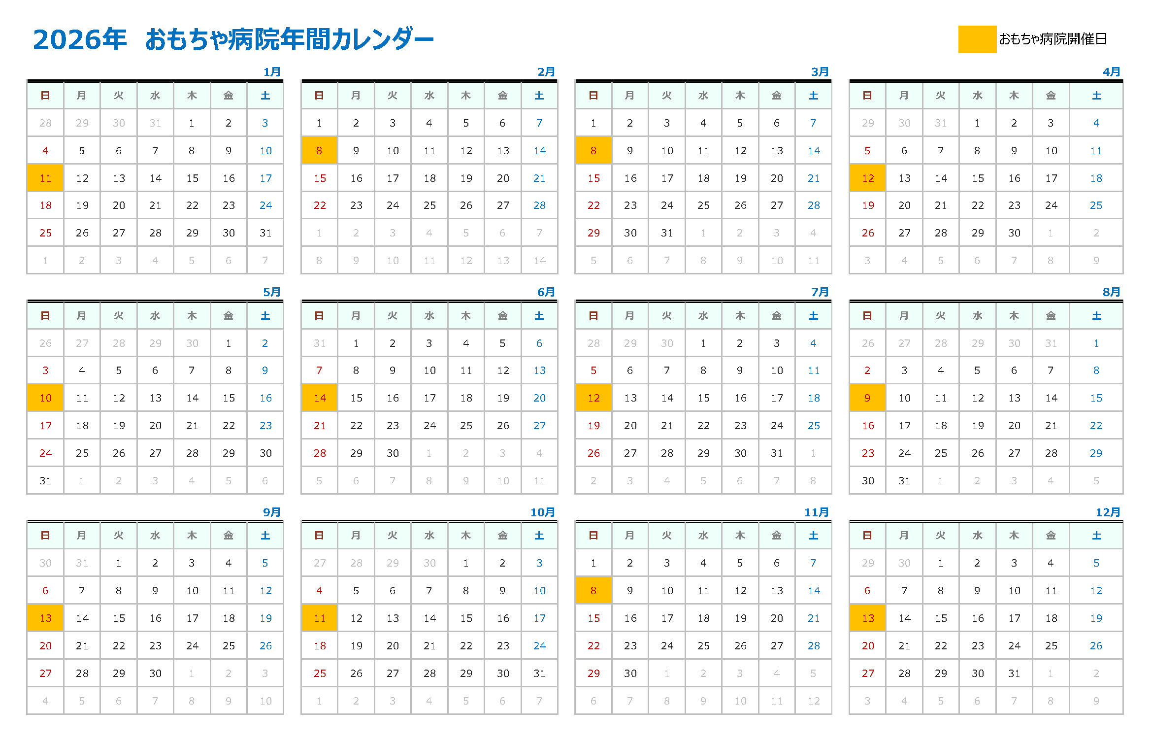 (開催日は、カレンダーをご確認ください。)