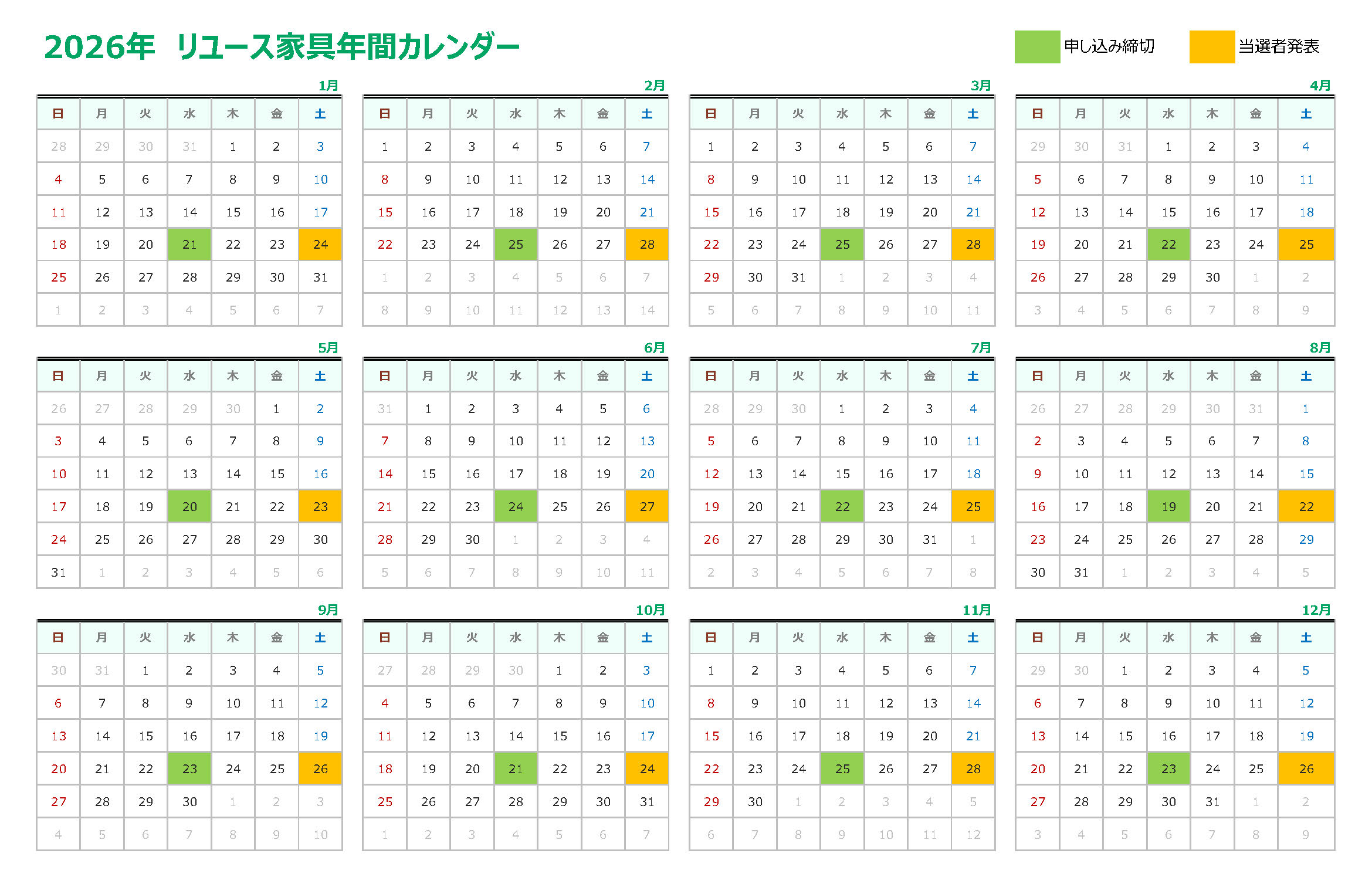 毎月公開されている「今月のリユース家具」をご確認いただき、えこはまにて現物をご確認ください。